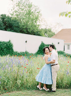 More Customer Photos! above is an adorable photo of my client getting engaged wearing her custom made Marilyn Monroe blue polkadot sundress! <3
